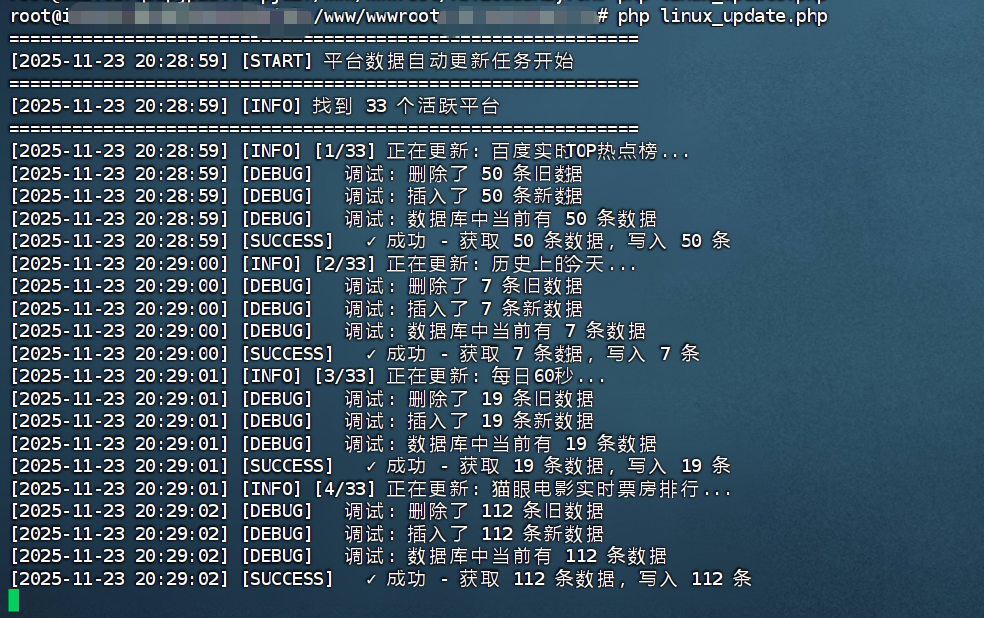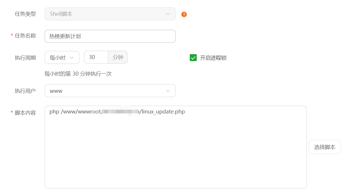 以宝塔举例 如图这样设置,每小时更新一次数据  执行日志如图  执行完毕